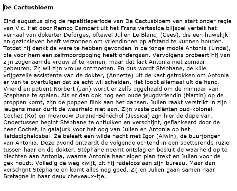 De Cactusbloem- Verslag